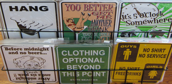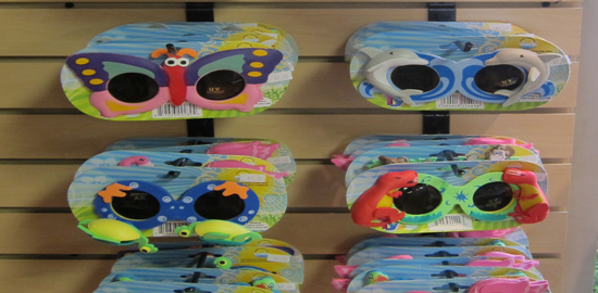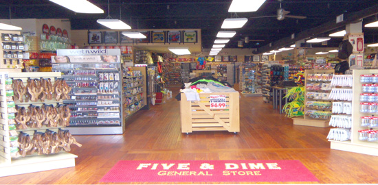 Sun hats, desk supplies, cowboy hats, sunglasses, flip-flops, ocean and surf souvenirs, seashell wind chimes, snacks, lip gloss, toiletries, candies, toys, cigarettes, film, nostalgia items, sunscreens, home decor items, film, razors, cold drinks, sunscreens, and some of California's greatest tee shirts.