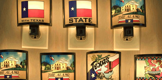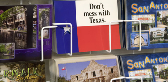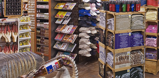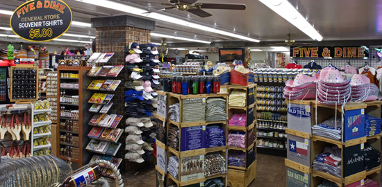 Texas souvenirs, nylons, sunglasses, toothpastes, post cards, cowboy hats, batteries, cold remedies, greeting cards, cold soft drinks, snacks, film, hair spray, gloves, umbrellas, tee-shirts, bottled water, sunscreens, dental floss, eye drops, toys, lipsticks and gag items for kids of all ages.