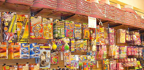 Chargers' logo gift items, souvenirs, chilled drinks, juices, sun hats, snacks, sunglasses, sunscreens, aspirin, flip-flops, candy, nasal spray, tee-shirts, batteries, lip gloss, post cards, film, candies, first aid items, hot salsas and ceramic décor.