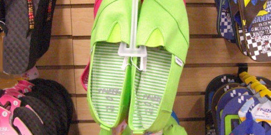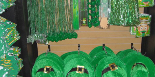 Sun hats, sunscreen, games, toys, snacks, candies, razors, socks, cigarettes, cold drinks, tee shirts, Georgia souvenirs, toiletries, tissue, soap, mouthwash, aspirin, sunglasses, redneck gag items, jewelry, holiday party items, shampoo, hairspray, cosmetics, diapers, strollers, flip-flops, shaving cream, ice cream bars, home décor items, cell phone supplies, ear-buds and taffy.